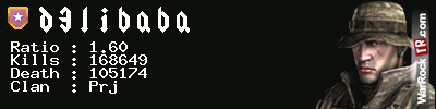 ![]() K/D: 1.20 ![]() LwL: 41 ![]() Clan: .... ![]() Favori Silah : |